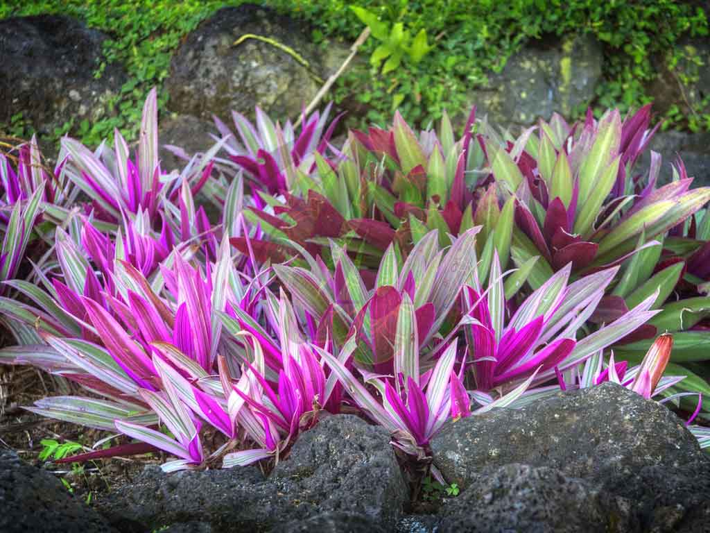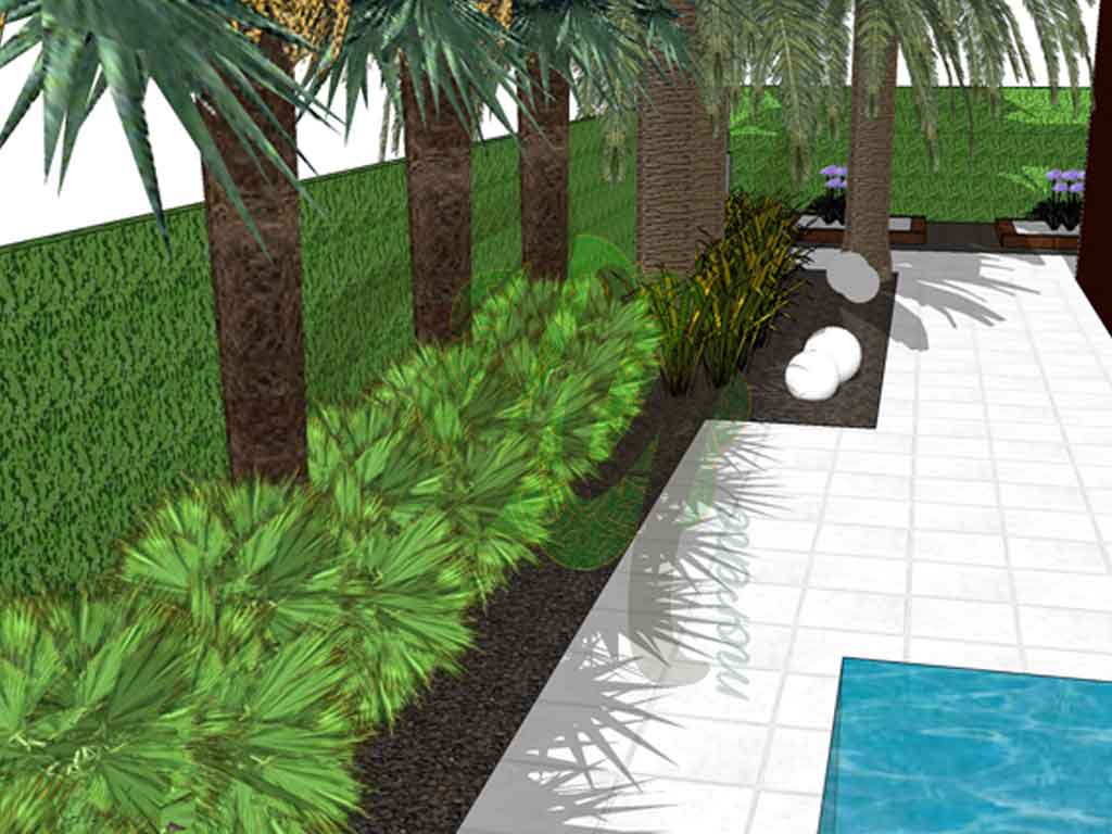 To give the same characteristics of the tropics, we created a tropical garden using architectural foliage and showy flowers in hot, clashing colors.